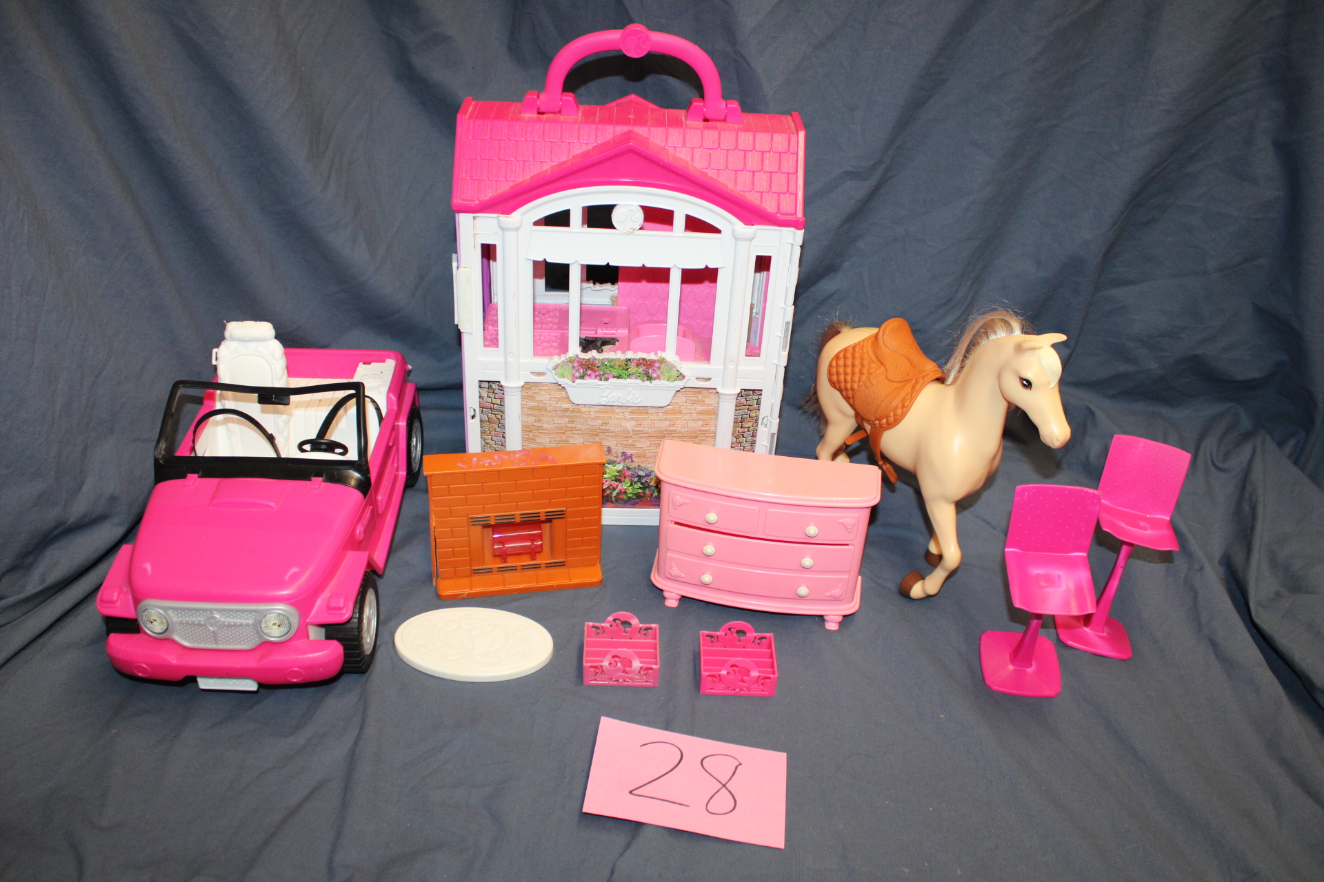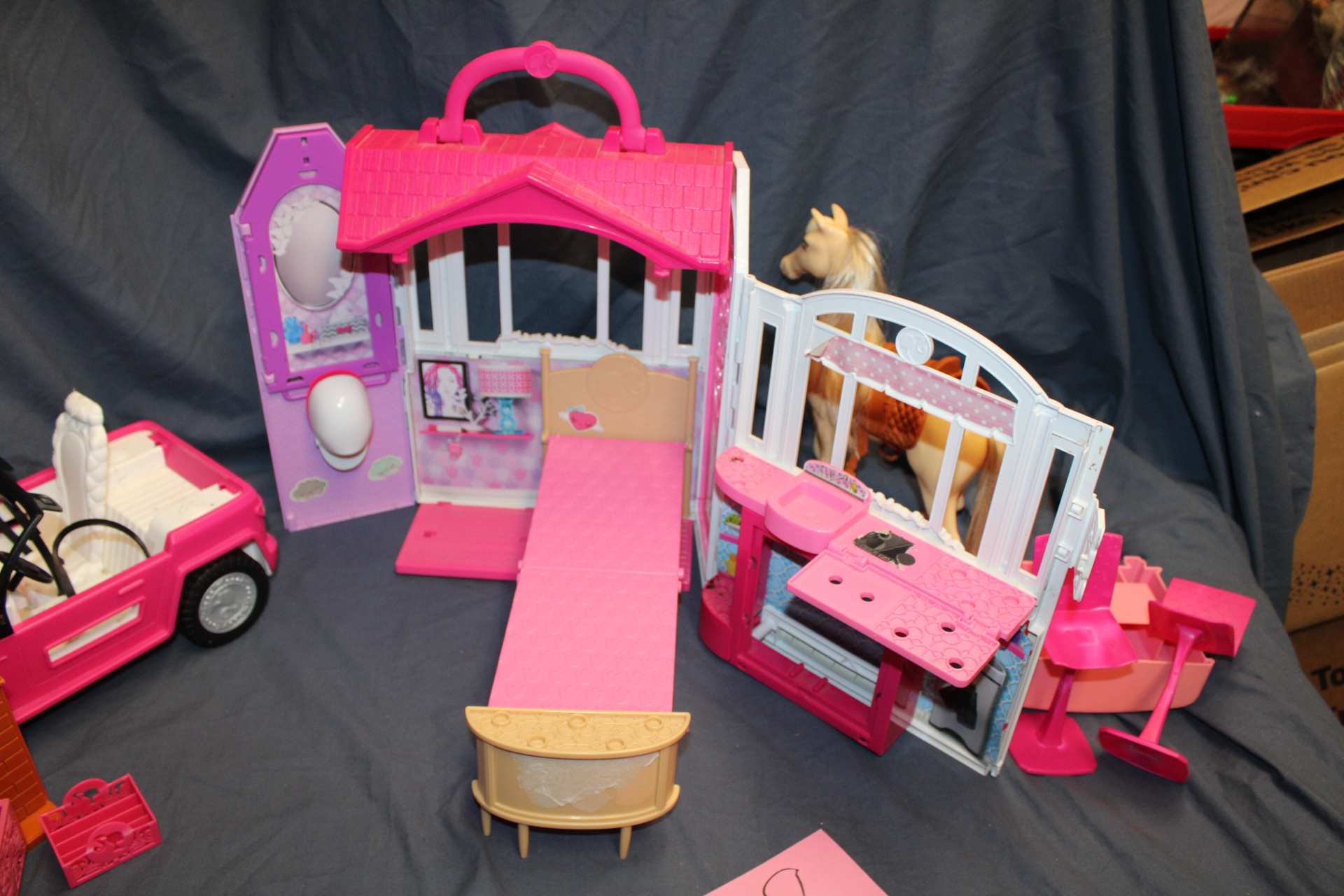Multiple Barbie accessories.