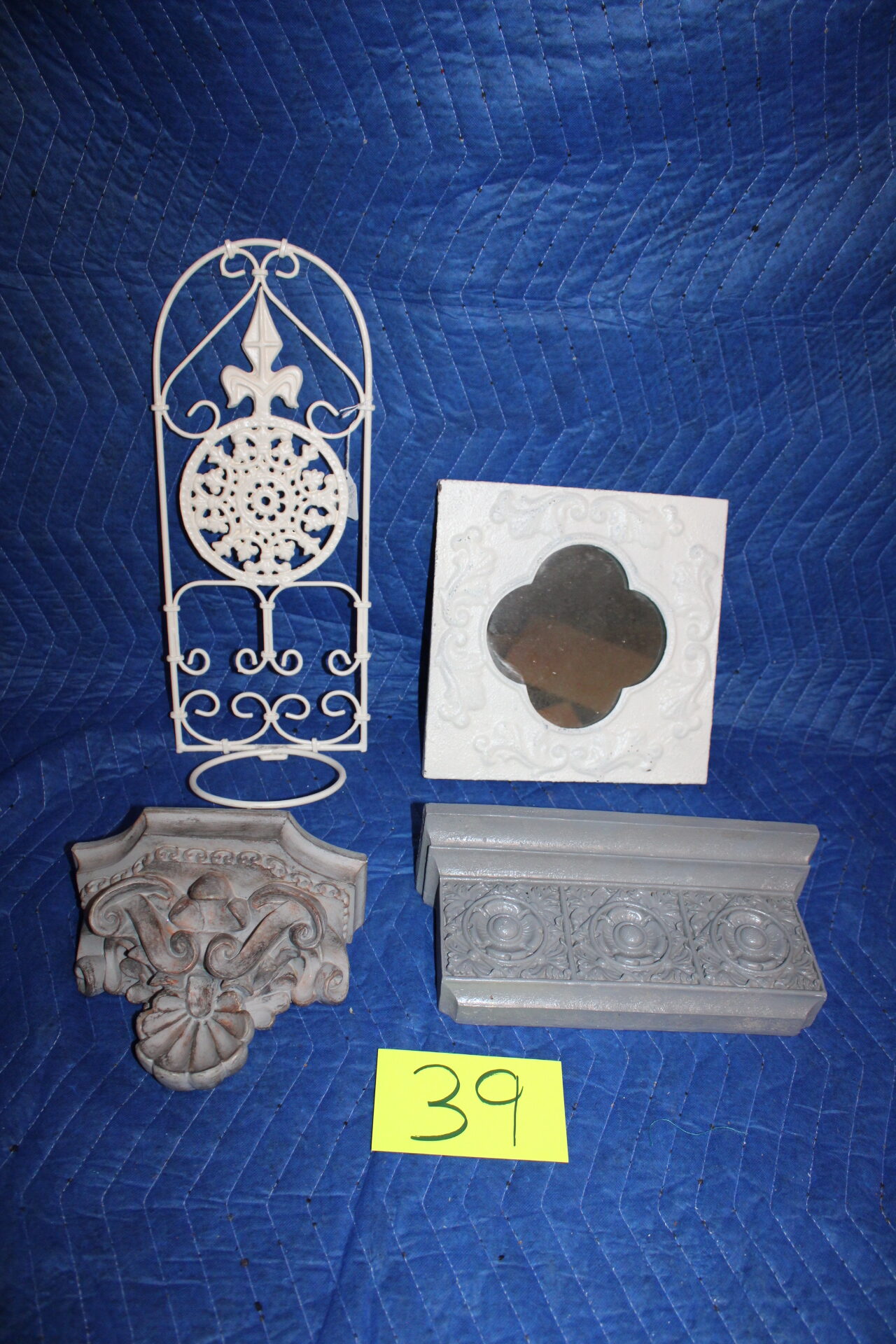Lot 39 Home Decor. items Wrought iron mirror Shelves