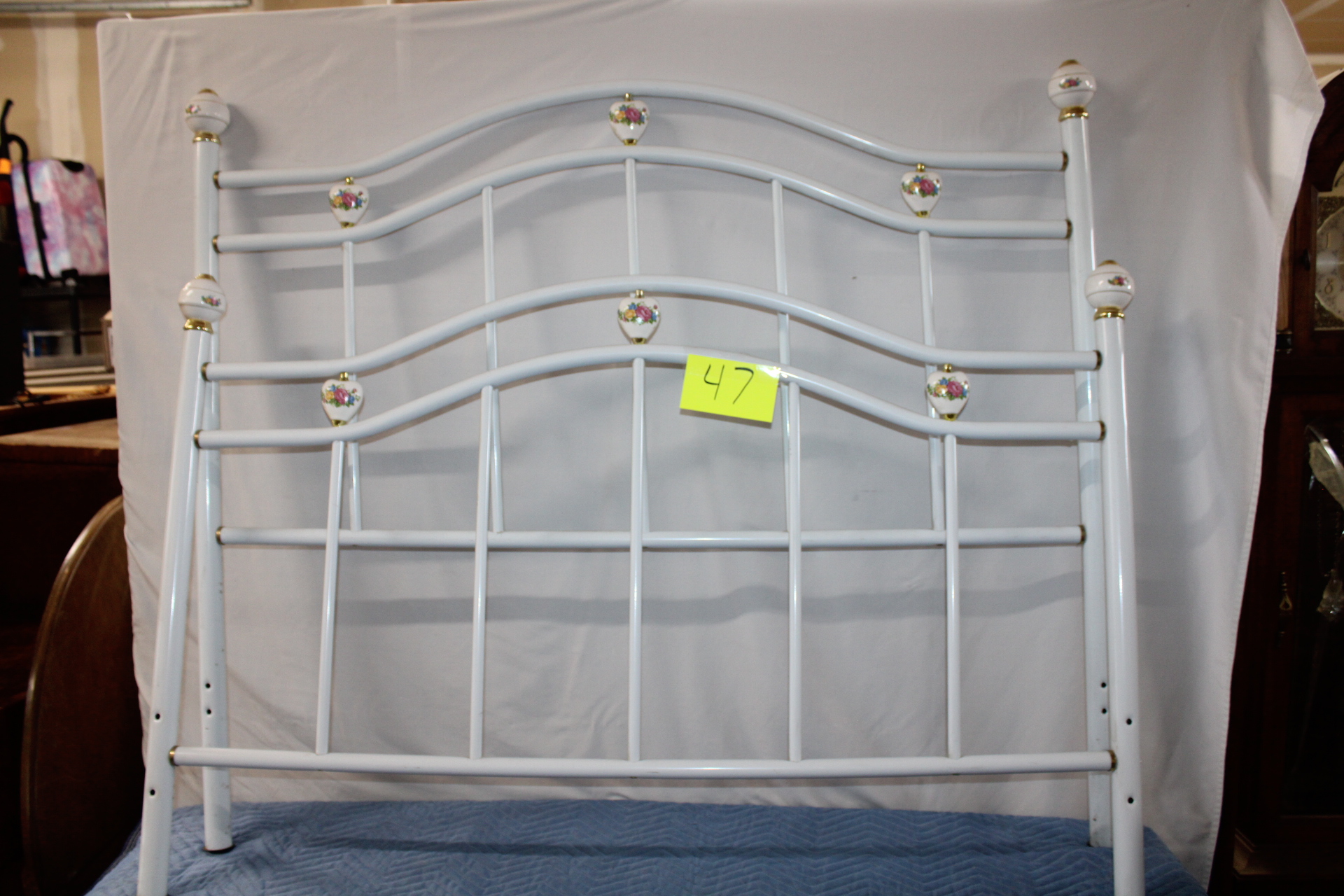 Lot 47 White Metal Floral Finial Full Bed Frame
