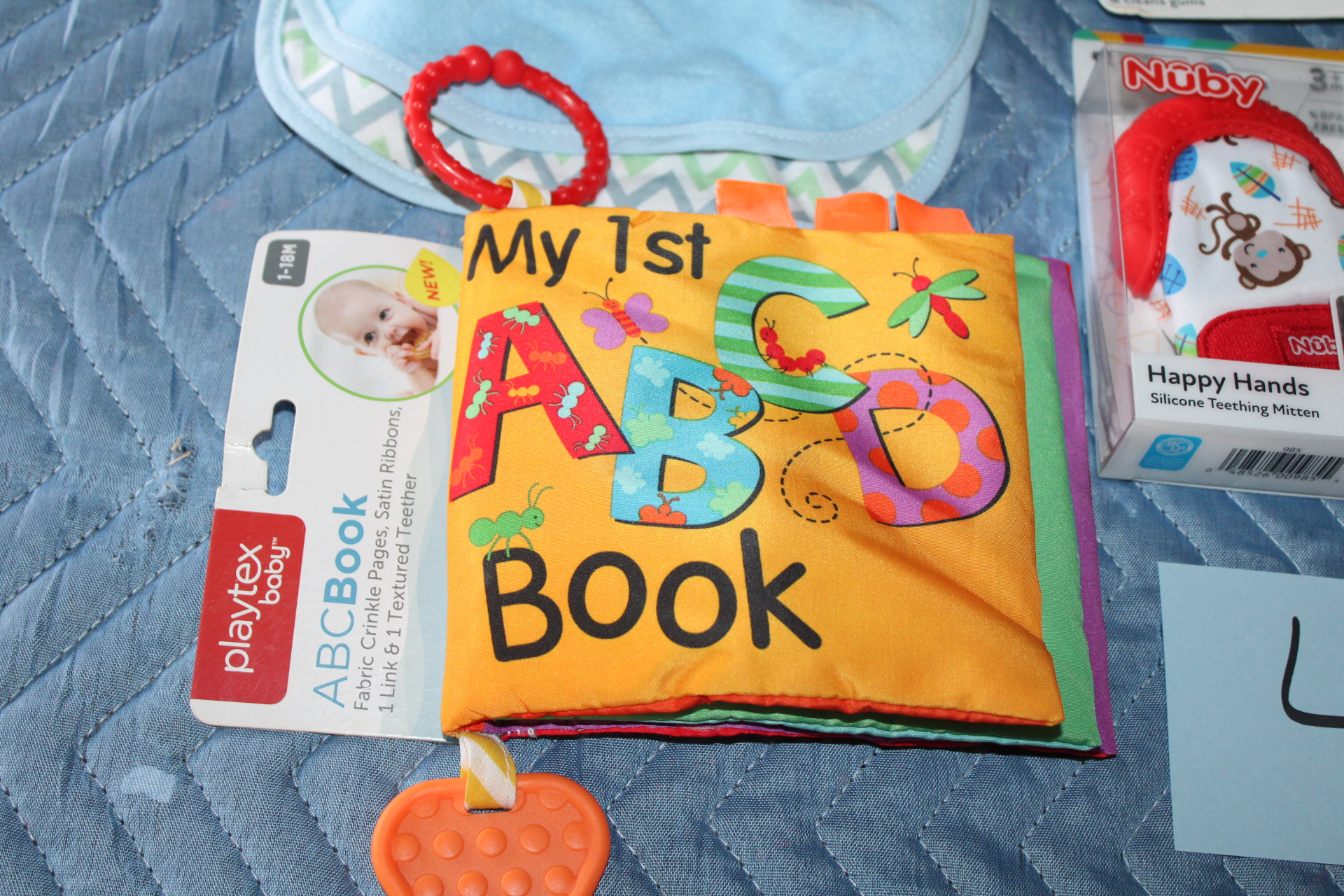soft ABC’s book.Tommee Tippee bib.