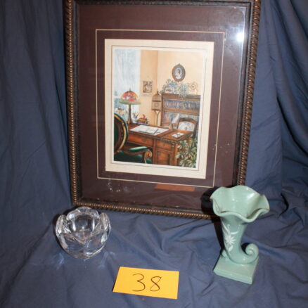 Lot 37 Framed Artwork, Pottery & Votive Holder
