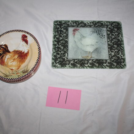 Lot 11 Rooster Hen Country Cuttingboard and Plates