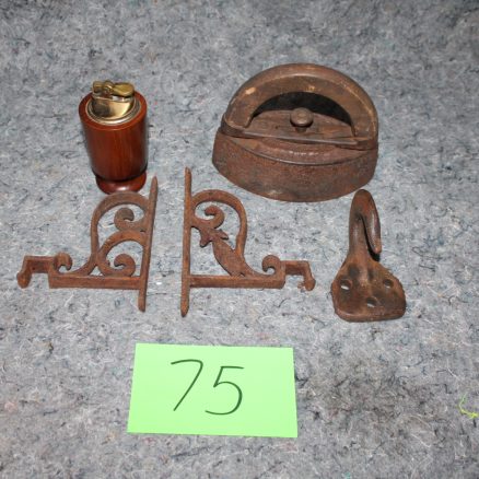 Lot 75 Antique Cast Iron, hooks, lighter