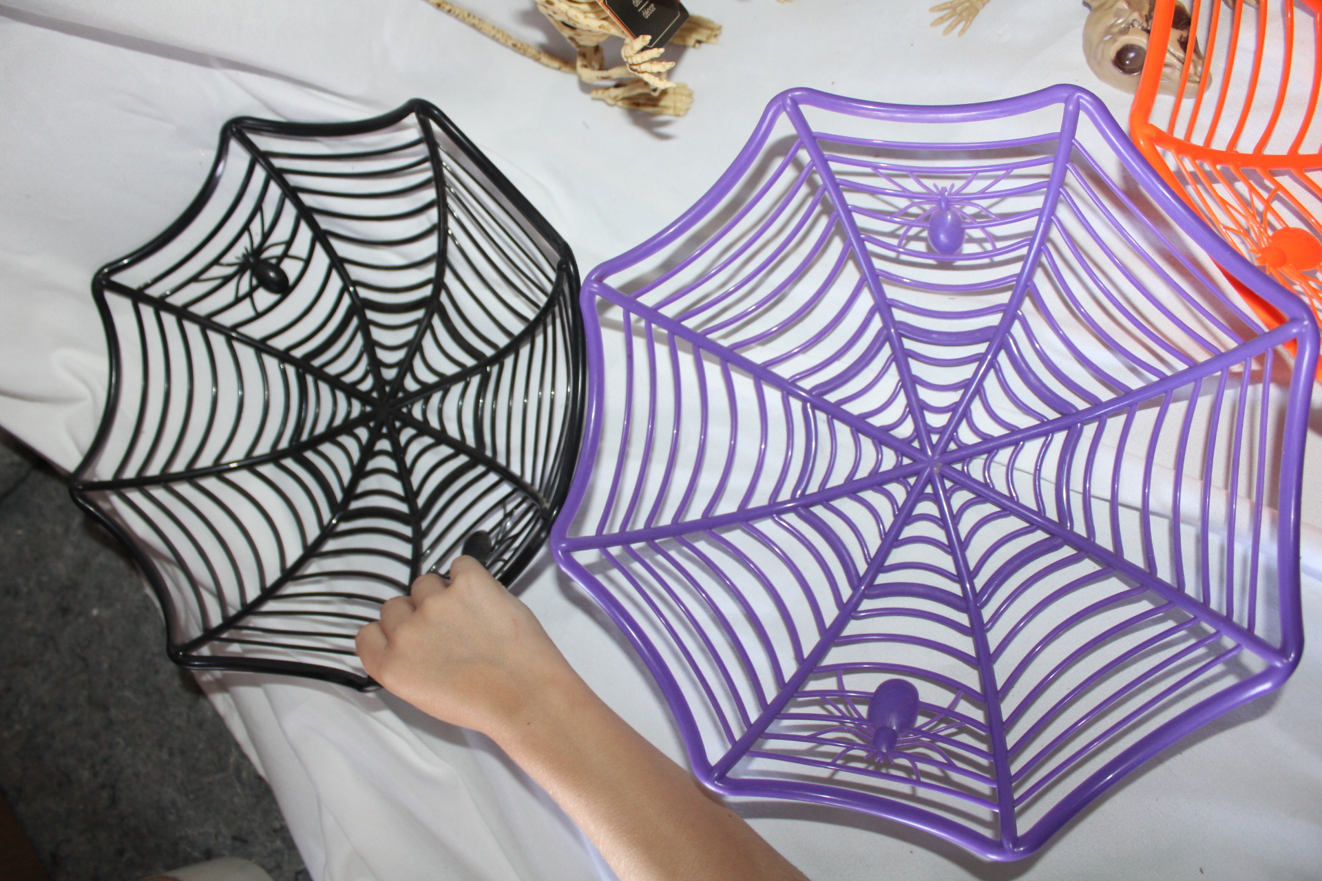 3 plastic spider web bowls. They are 9.5 inches in diameter.