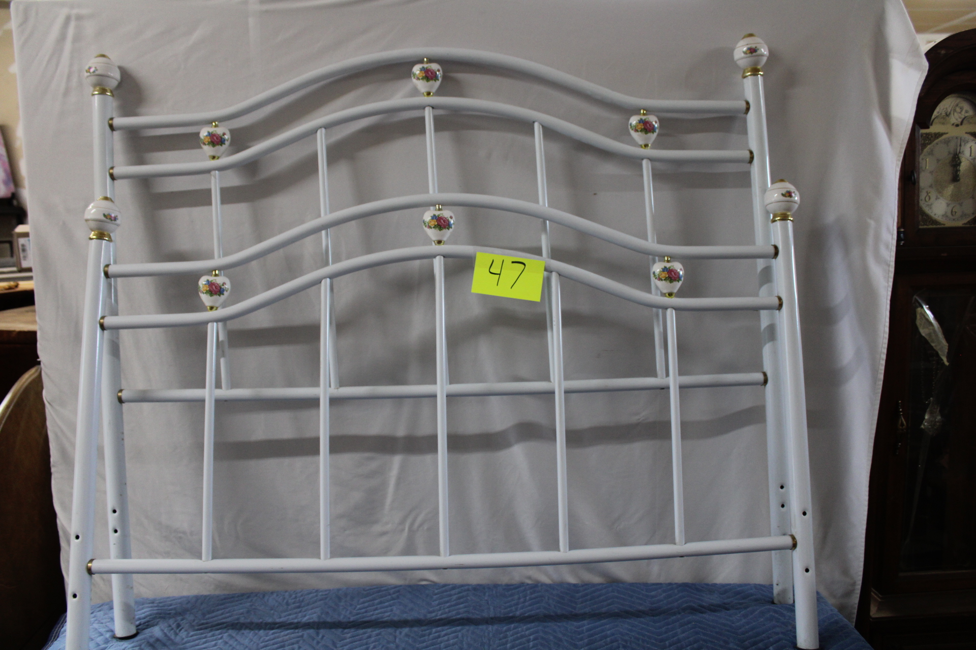 Lot 47 White Metal Floral Finial Full Bed Frame